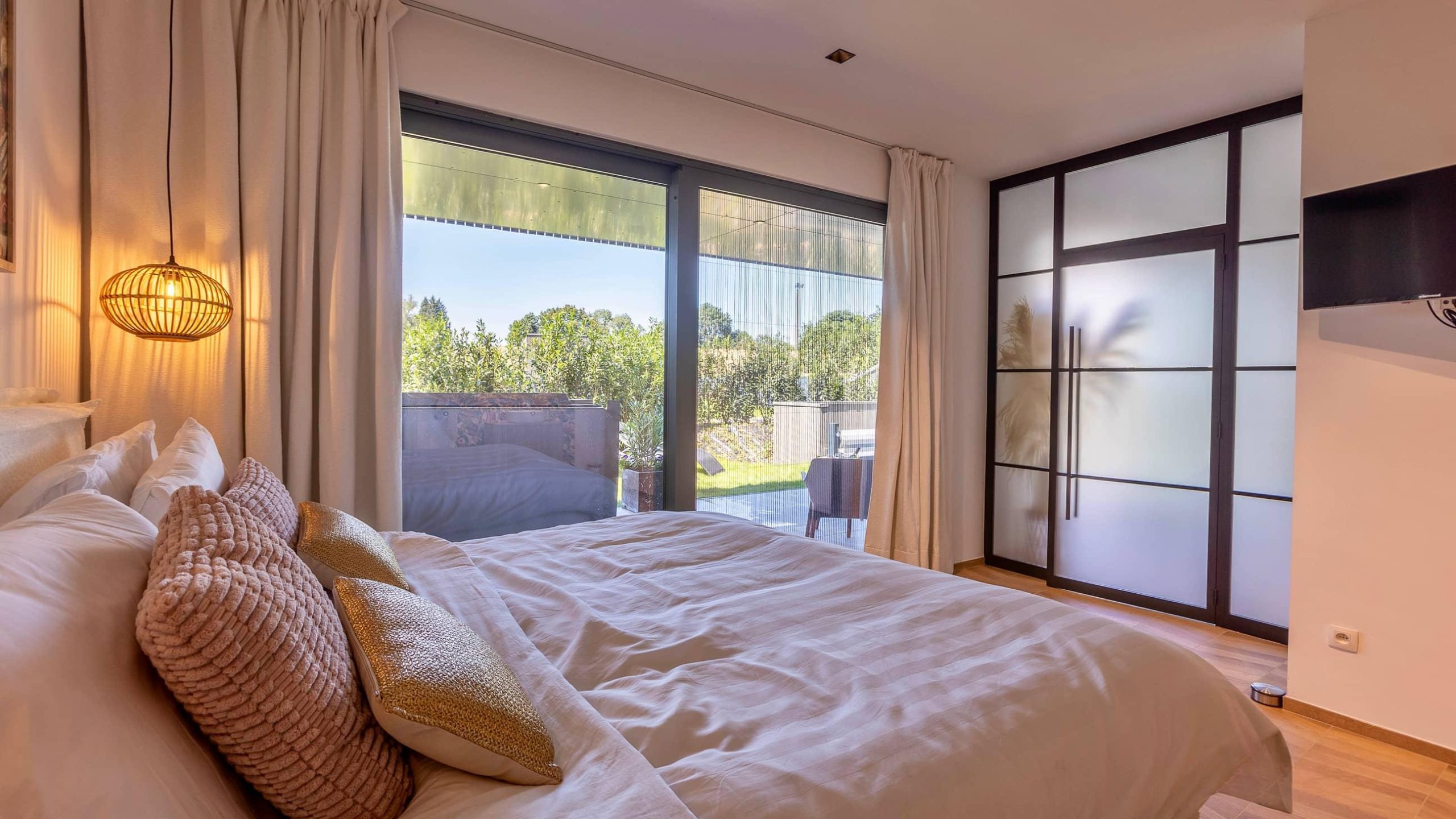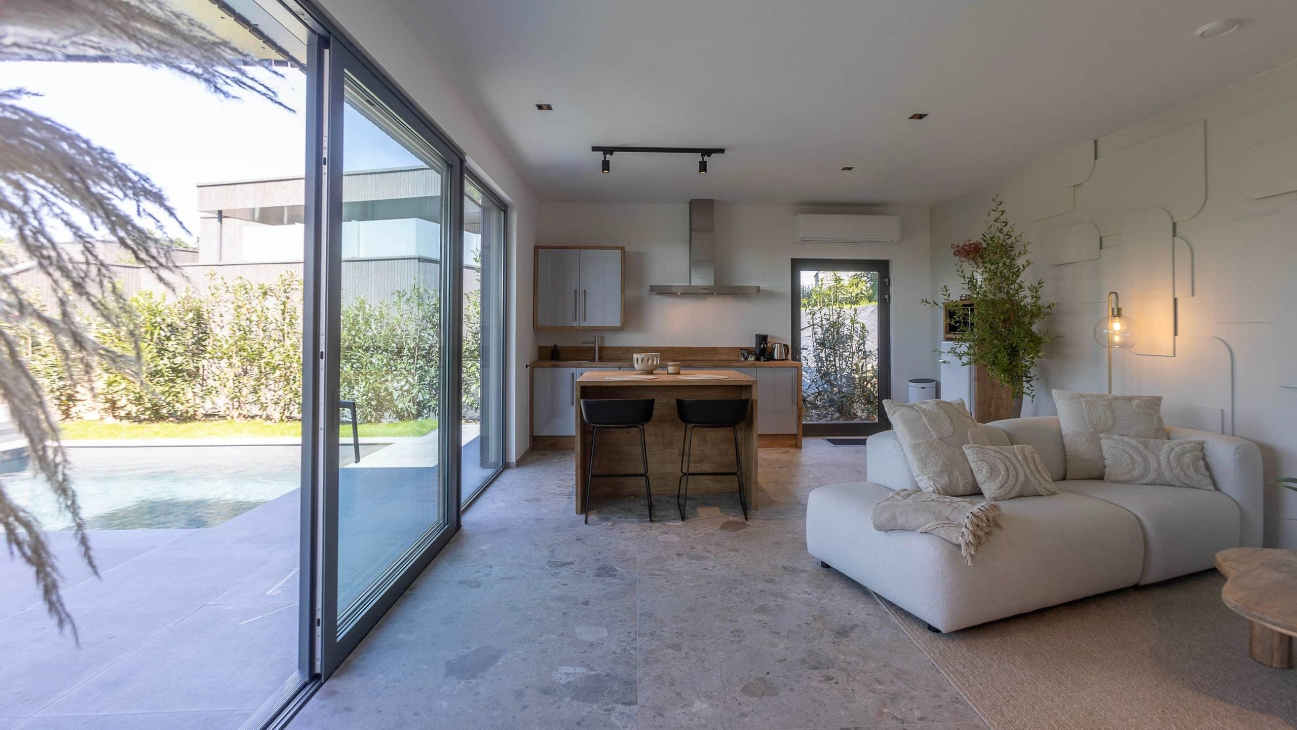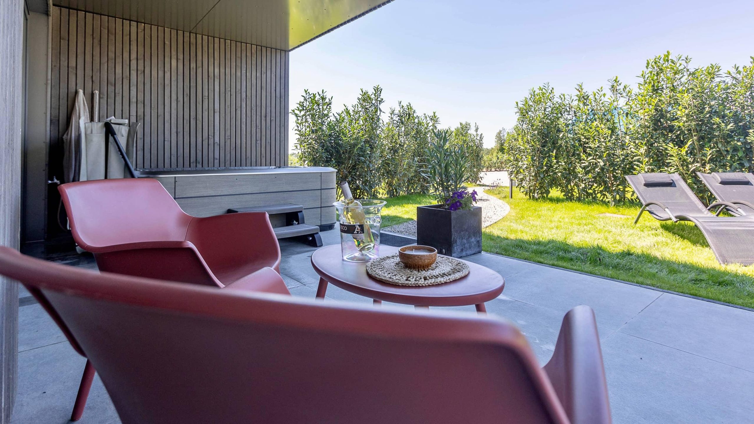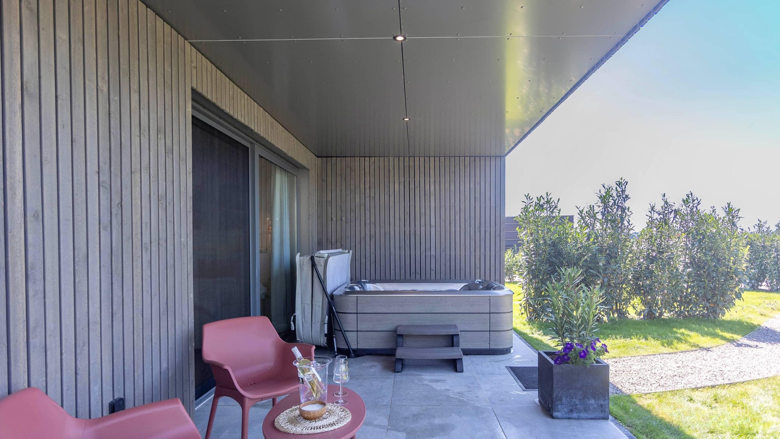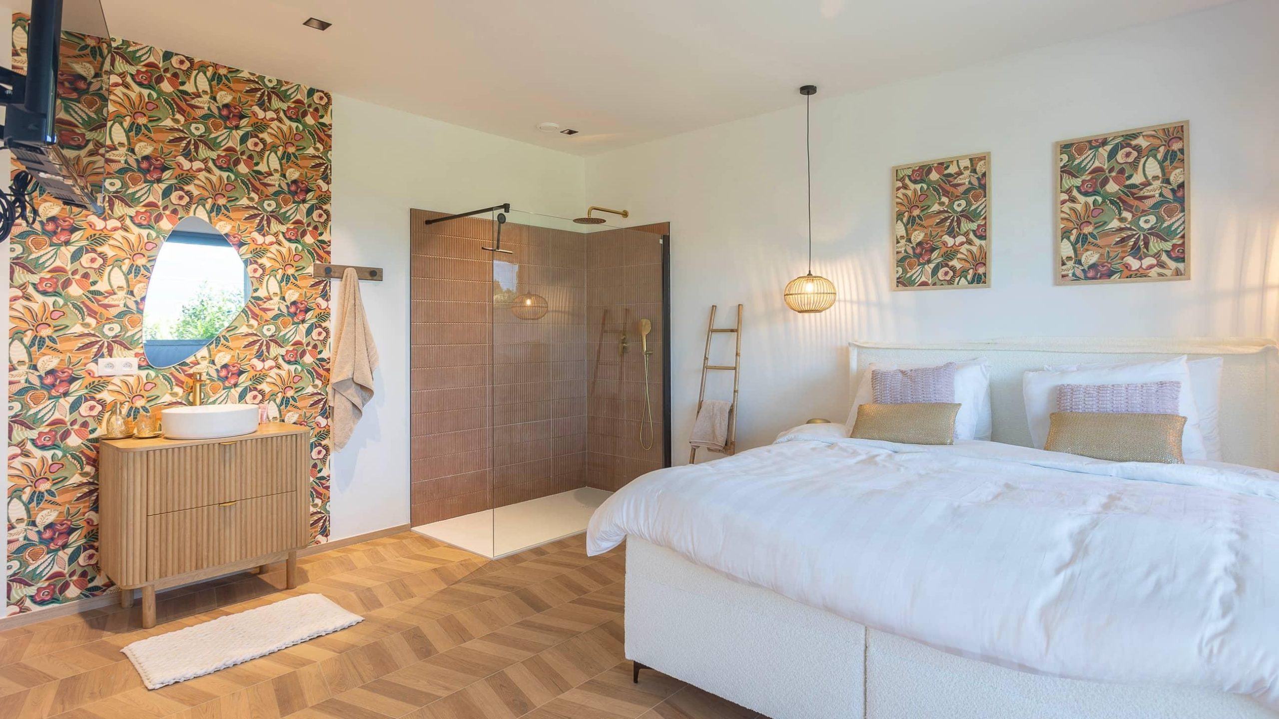 Style fleuri et épuré, le Lodge Olea vous accueille dans une ambiance apaisante et romantique. Profitez de votre piscine privée et de votre jacuzzi pour des moments de détente absolue.